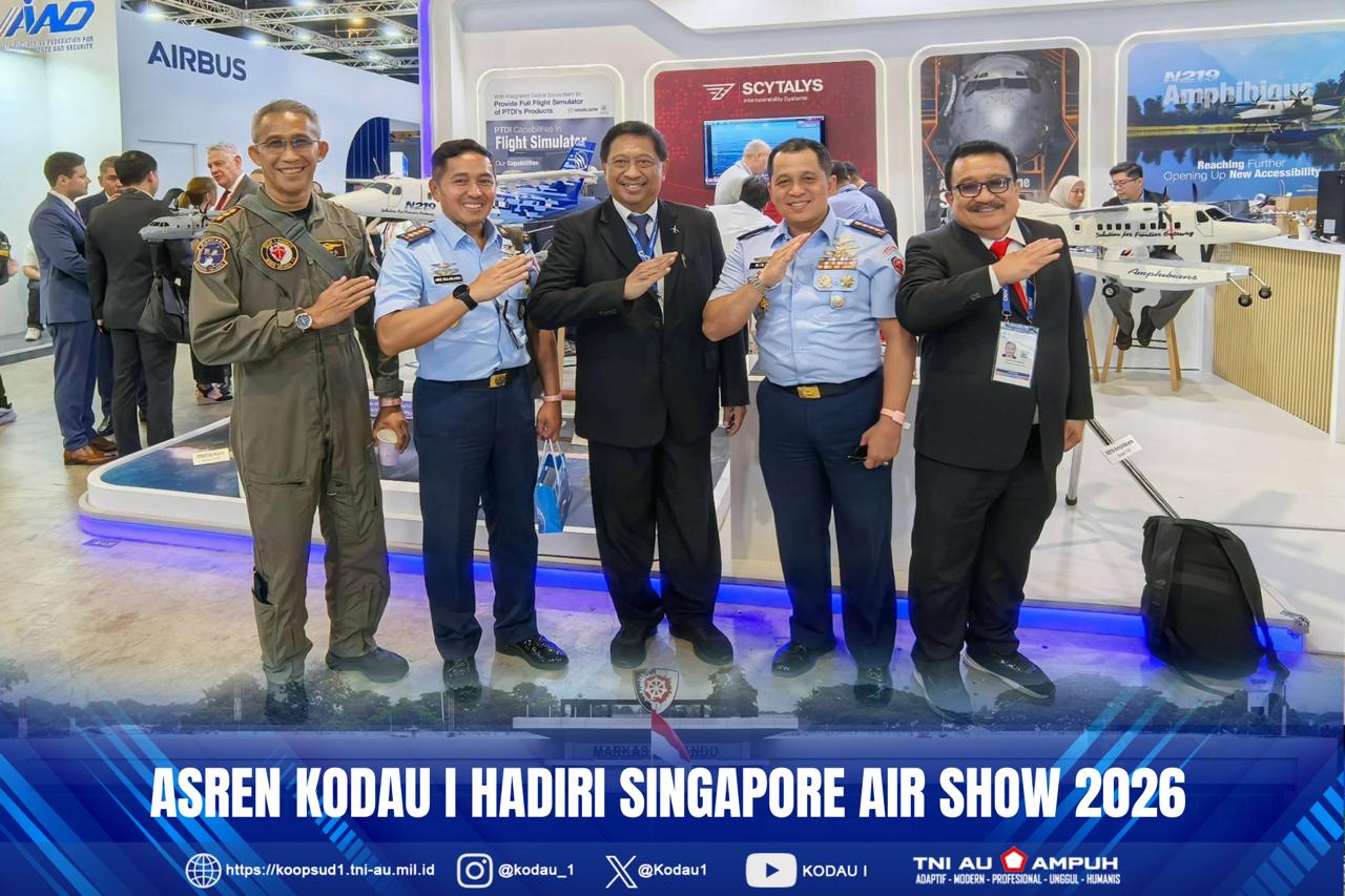 Jakarta, Penkodau I. Asren Kodau I Kolonel Pnb Arie Sulanjana, S.T., M.P.M., beserta rombongan para perwira dari Mabes TNI, TNI AD, TNI AL dan para perwira TNI AU lainnya hadiri Singapore Air Show yang dimulai sejak tanggal 3 sampai dengan 8 Februari 2026 di Changi Exhibition Centre, Singapura. (Rabu, 4-2-2026).