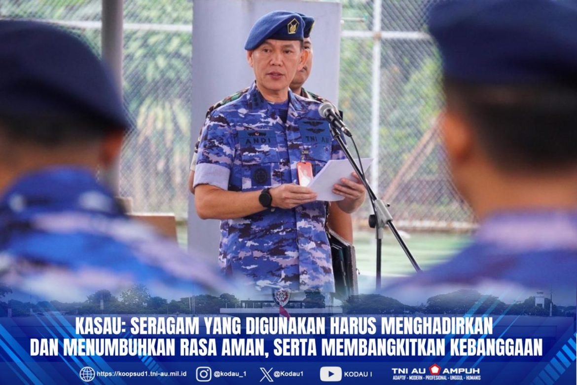 Jakarta, Penkodau I. Aslog Kaskodau I Kolonel Tek Chandra Komar pimpin pelaksanaan Apel Pagi, bertempat di Lapangan Tennis Indoor, Makodau I. (Senin, 23-2-2026).