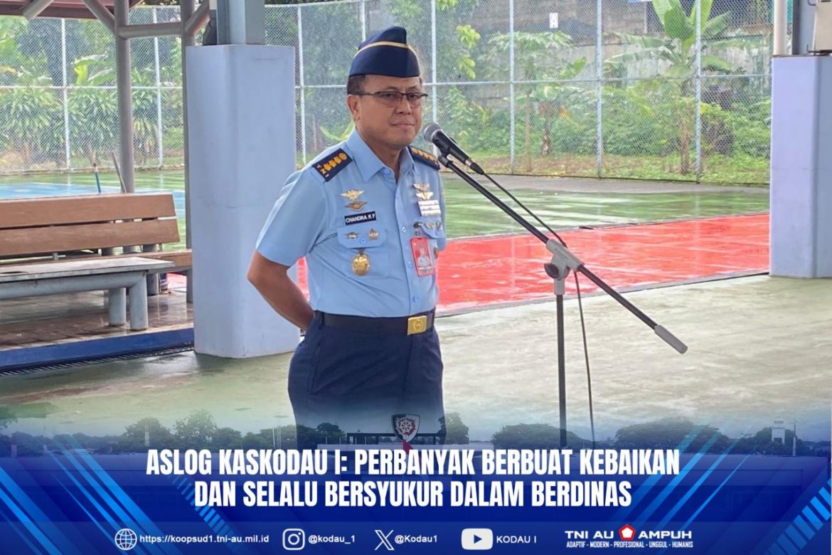 Lebih lanjut Aslog Kaskodau I menambahkan bahwa kita juga harus selalu senantiasa bersyukur dan tulus serta ikhlas dalam setiap menjalani kedinasan dimanapun kita berada, agar kita selalu semangat dan berkah dalam mendarmabaktikan hidup kita untuk bangsa dan negara melalui TNI Angkatan Udara.