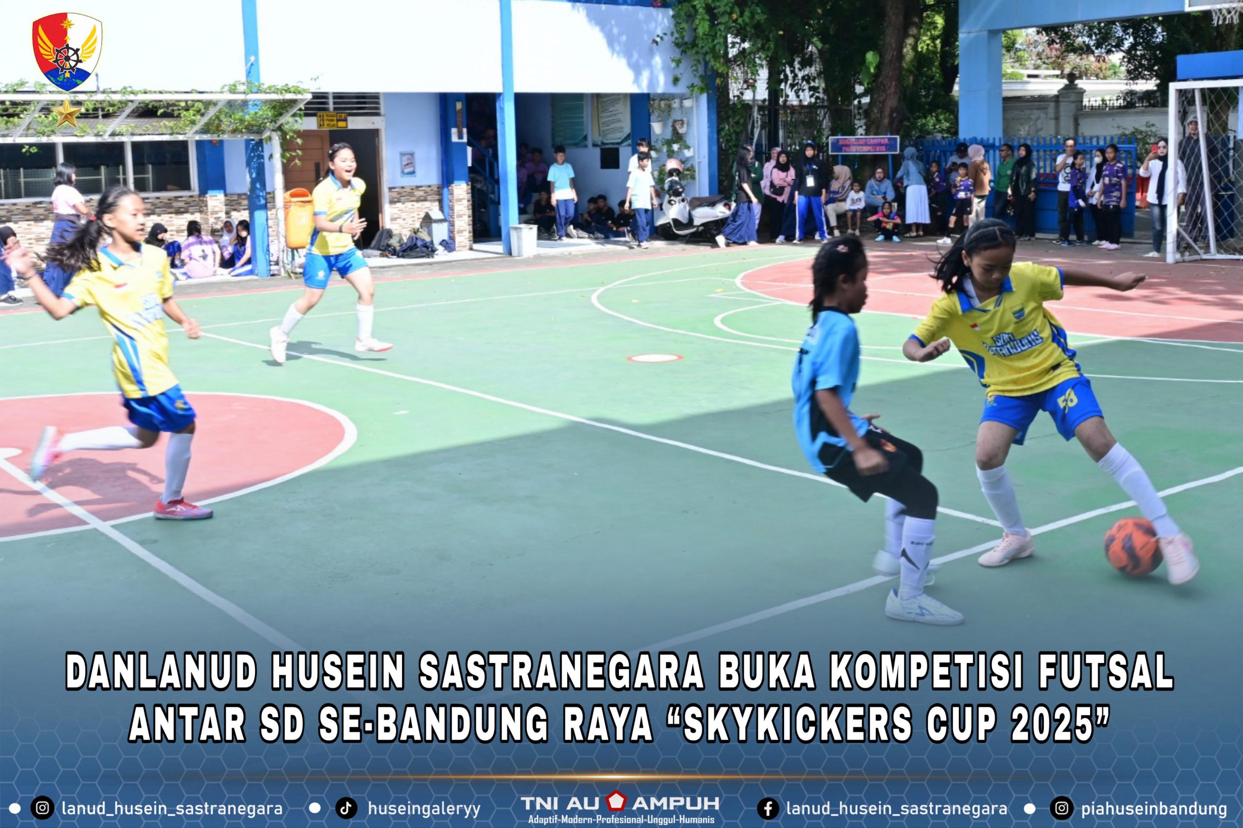 Bandung — Komandan Lanud Husein Sastranegara Marsma TNI MD. Irman Fathurrahman, S.E., M.M., didampingi Ketua Yasarini Pengurus Cabang Lanud Husein Sastranegara Ny. Ayu Irman dan Kepala Sekolah SMP Angkasa Bapak Aris Kristian secara resmi membuka Kompetisi Futsal Antar Sekolah Dasar se-Bandung Raya bertajuk “Skykickers Cup 2025” yang digelar di SMP Angkasa, Lanud Husein Sastranegara, Senin (15/12).