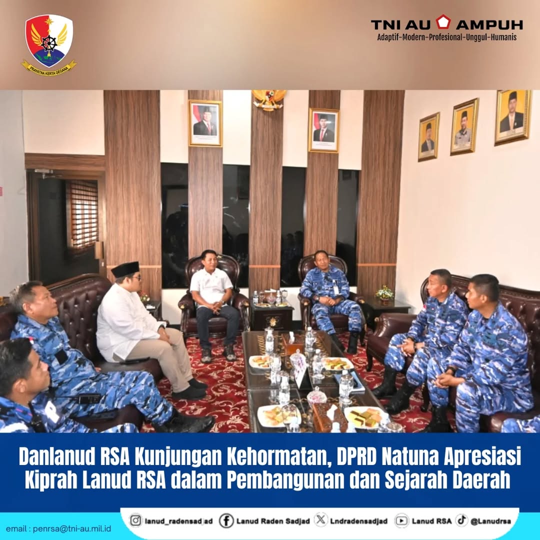 Ketua DPRD Natuna Rusdi menyampaikan bangga dan terima kasih atas kunjungan Danlanud beserta jajaran. Ia berharap sinergi antara Lanud RSA dan DPRD Natuna terus terjalin demi kemajuan dan kesejahteraan masyarakat Natuna.