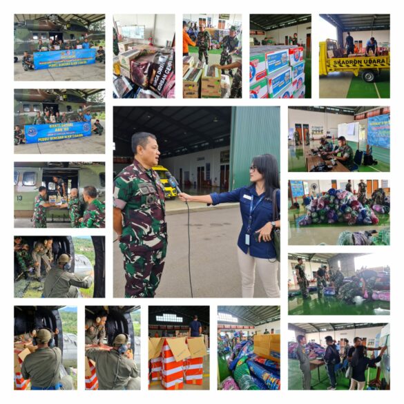 Helikopter TNI Angkatan Udara yang dioperasionalkan Skadron Udara 6 dan 8 Wing 4 Lanud Atang Sendjaja, Jum’at (25/11) mendistribusikan berbagai bantuan kemanusiaan untuk masyarakat Cianjur pasca gempa bumi terjadi.