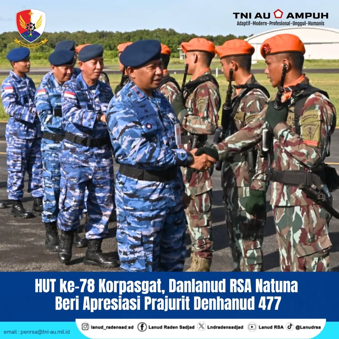 HUT ke-78 Korpasgat, Danlanud RSA Natuna Beri Apresiasi Prajurit Denhanud 477