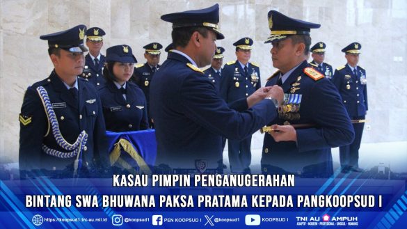 Jakarta, Penkoopsud I. Kepala Staf Angkatan Udara (Kasau) Marsekal TNI M. Tonny Harjono, S.E., M.M., pimpin upacara penganugerahan Tanda Kehormatan Republik Indonesia Bintang Swa Bhuwana Paksa Pratama kepada Pangkoopsud I Marsda TNI Mohammad Nurdin beserta Dankopasgat dan Kaskogabwilhan III. Bertempat di Lobby Ruang Hening Gedung Rd. Suryadu Suryadarma Mabesau, Cilangkap, Jakarta. (Kamis, 11-7-2024).