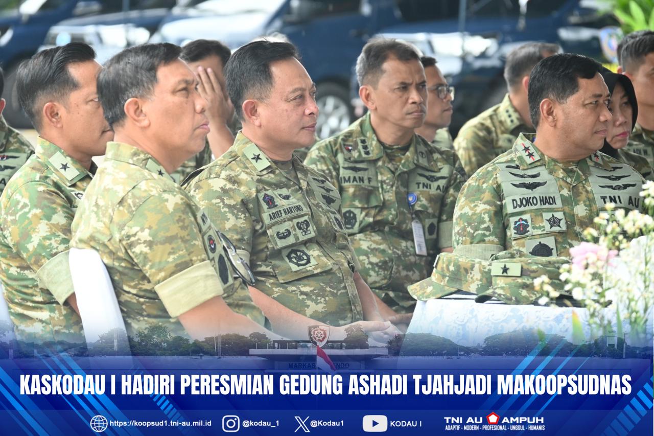 Jakarta-Penkodau I. Panglima Kodau I Marsda TNI Muzafar, S.Sos., M.M., yang diwakili Kaskodau I Marsma TNI Arief Hartono, S.H., MNSA., turut menghadiri peresmian gedung Ashadi Tjahjadi Makoopsudnas oleh Kepala Staf Angkatan Udara Marsekal TNI M. Tonny Harjono, S.E., M.M., tempat di Koopsudnas, Halim Perdanakusuma Jakarta, Jumat (20/2/26).