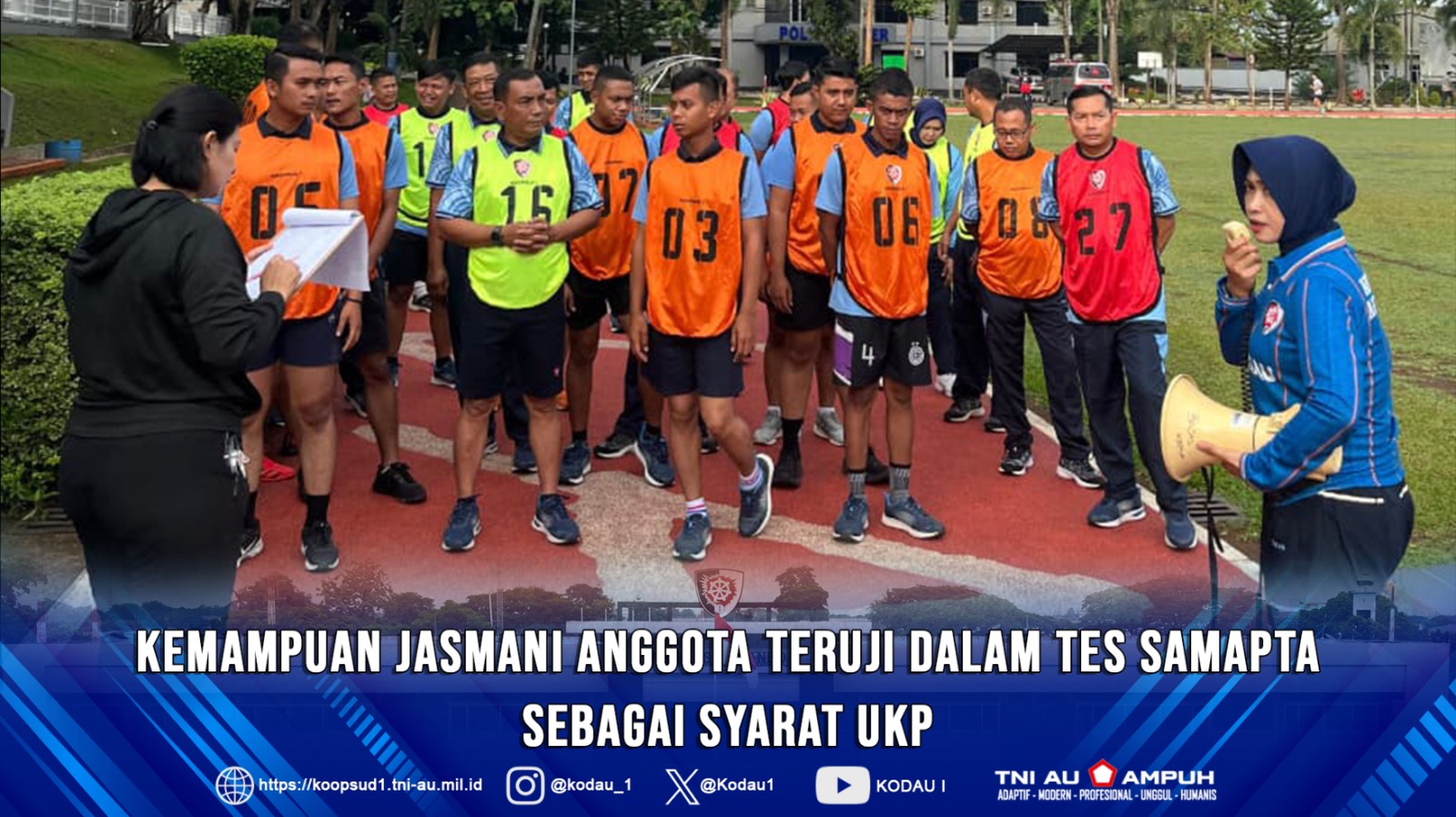 Jakarta, Penkodau I. Sebanyak 26 anggota Makodau I melaksanakan tes Samapta untuk menguji kemampuan jasmani maupun kesehatan anggota sebagai syarat Pengusulan Kenaikan Pangkat Periode 1 April 2025, yang berlangsung di lapangan Galaxy Makodau I. Jum’at (24-10-3025).