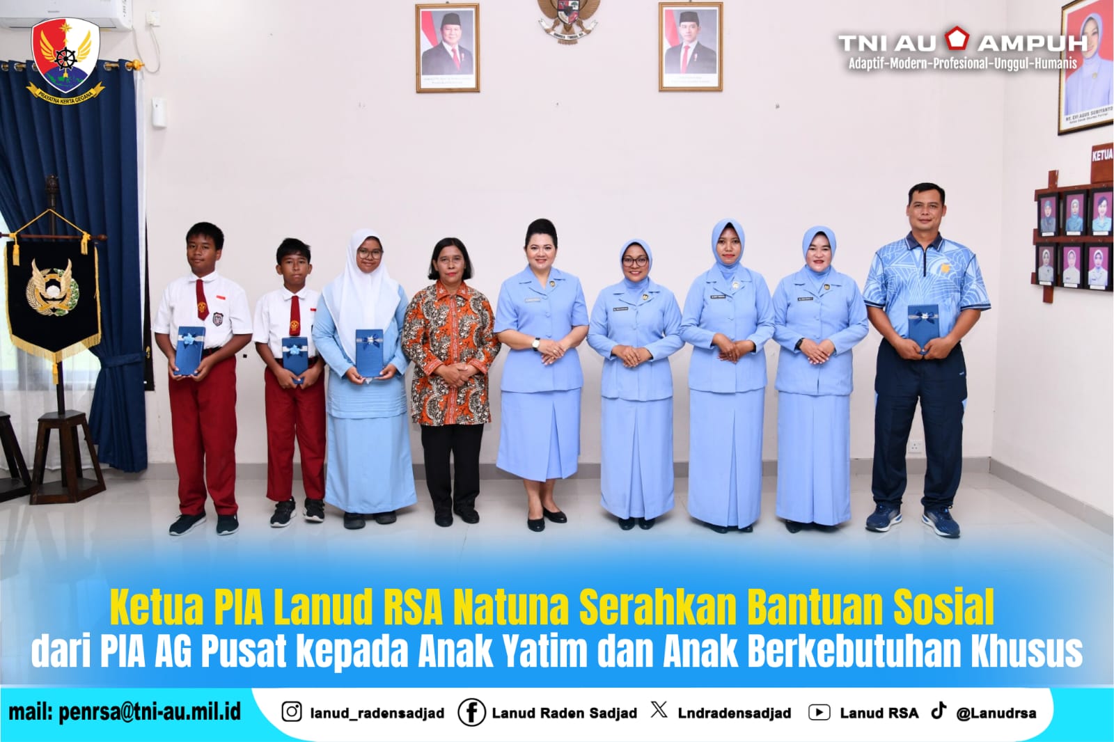 Ketua PIA Lanud RSA Natuna Serahkan Bantuan Sosial dari PIA AG Pusat kepada Anak Yatim dan Anak Berkebutuhan Khusus