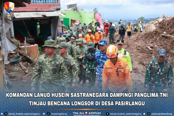 Home Berita Komandan Lanud Husein Sastranegara Dampingi Panglima TNI Tinjau Bencana Longsor di Desa Pasirlangu