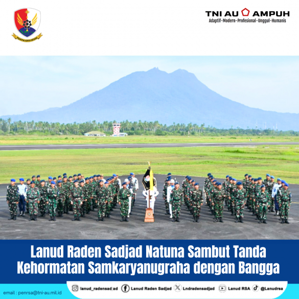 Lanud Raden Sadjad menorehkan prestasi nasional setelah menerima tanda kehormatan tertinggi Samkaryanugraha dari Panglima Tertinggi TNI, Presiden Republik Indonesia Bapak Prabowo Subianto, pada rangkaian HUT ke-80 TNI di Jakarta, 2 Oktober 2025 lalu.