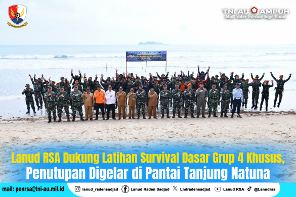 Lanud Raden Sadjad Natuna memperkuat pelaksanaan Latihan Survival Dasar Grup 4 Khusus TA 2026 melalui dukungan personel dan fasilitas. Kegiatan ditutup Rabu (11/2/2026) di Pantai Tanjung, Kabupaten Natuna, Kepulauan Riau.