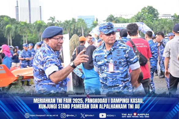 Jakarta-Penkodau. Panglima Kodau I Marsda TNI Muzafar, S.Sos, M.M., dampingi Kepala Staf Angkatan Udara Marsekal TNI M.Tonny Harjono, S.E., M.M., dan turut hadir Ketua Umum PIA Ardhya Garini Ny. Isa M.Tonny Harjono tempat di Stand Pameran TNI di Silang Monumen Nasional (Monas) Jakarta Pusat, Sabtu (20/9/25).