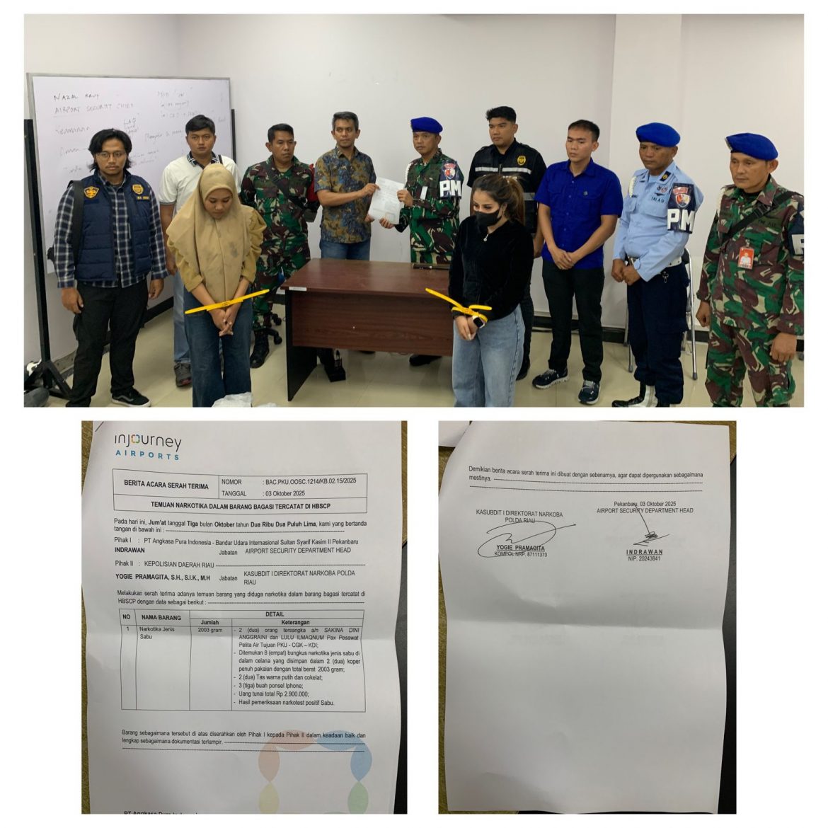 Keberhasilan tersebut tidak terlepas dari pengawasan dan pemeriksaan yang sangat ketat setiap barang yang masuk melalui bandara yang dilakukan oleh personel TNI AU Roesmin Nurjadin dan petugas Avsec Bandara Internasional SSK II Pekanbaru di Bawah Kendali Operasi (BKO), lebih 2 kg sabu telah ditemukan dalam dua koper yang dibawa oleh calon penumpang berinisial L.I. dan S.D.A., pada sore hari, Jumat 3 Oktober 2025.