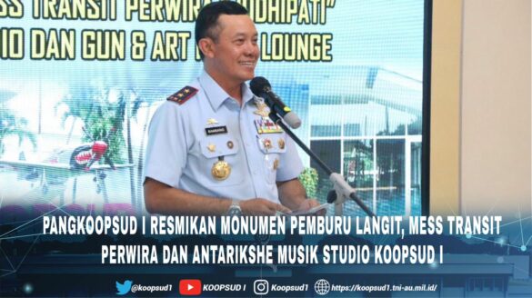 Penkoopsud I. Panglima Koopsud I, Marsda TNI Bambang Gunarto, S.T., M.M., M.Sc., didampingi Ketua PIA Ardhya Garini Daerah I Koopsud I Ny. Mala Bambang Gunarto meresmikan 3 Bangunan sekaligus yaitu Monumen Pemburu Langit, Mess Transit Perwira “Jodhipati”, serta Antarikshe Music Studio dan Gun & Art Music Lounge bertempat di Lobi Makoopsud I. Rabu (22 Nov 2023).