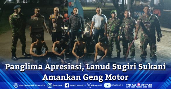 Dalam hal ini Panglima Koops Udara I Marsda TNI Muzafar, S.Sos., M.M., mengatakan saya bangga jajaran Lanud di Koops Udara I khususnya Lanud Sugiri Sukani yang peka dan waspada terhadap lingkungan dari setiap gangguan-gangguan kemananan seperti Geng Motor yang telah meresahkan masyarakat apalagi melakukan tindakan kriminal.