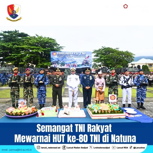 Komandan Lanud Raden Sadjad Marsma TNI Onesmus Gede Rai Aryadi, S.E., M.M., M.Han., melalui Palakhar Kadislog Lanud RSA Letkol Kal Fatkur Arifin, A.Md., mengucapkan terima kasih kepada seluruh pihak yang telah mendukung terselenggaranya Upacara HUT ke-80 TNI di Natuna.