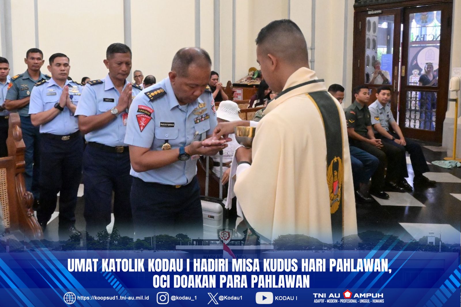 Jakarta. Penkodau I. Umat Katolik Kodau I hadiri Misa Kudus Hari Pahlawan, Ordinariatus Castrensis Indonesia (OCI) atau Keuskupan Umat Katolik di Lingkungan TNI-Polri lakukan doa bagi para pahlawan bangsa bertempat di Gereja Katedral Jakarta, pagi, Selasa (11/11/25).